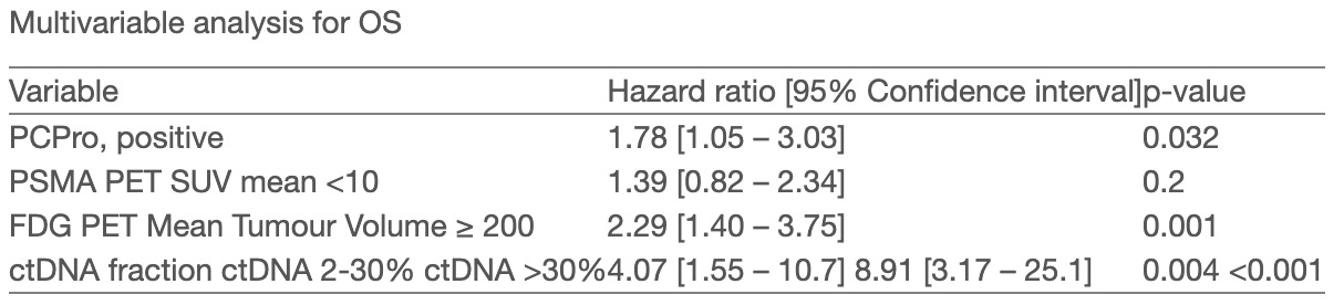 특히, 다른 강력한 예후 인자들(FDG-PET 종양 부피, 혈중 순환 종양 DNA 등)을 모두 고려한 다변수 분석에서도 PCPro 양성은 여전히 전체 생존기간(OS)을 예측하는 독립적인 위험 인자로 확인되었음 (위험비[HR] 1.78, p=0.032).