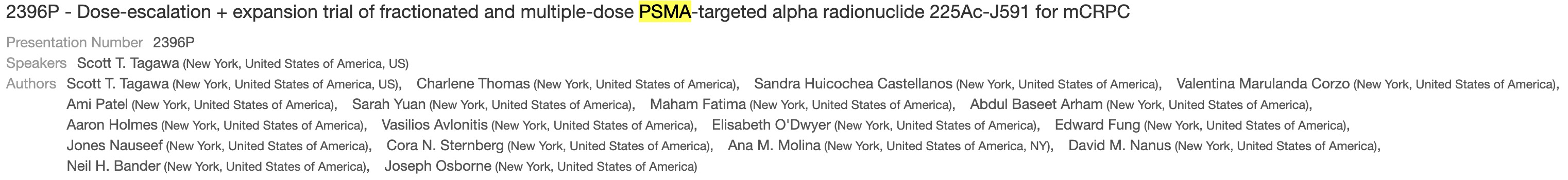 [12] 2396P - Dose-escalation + expansion trial of fractionated and multiple-dose PSMA-targeted alpha radionuclide 225Ac-J591 for mCRPC (2396P - 전이성 거세저항성 전립선암(mCRPC)에 대한 PSMA 표적 알파 방사성 핵종 ²²⁵Ac-J591의 분할 및 다회 투여 용량 증량 + 확장 임상시험)