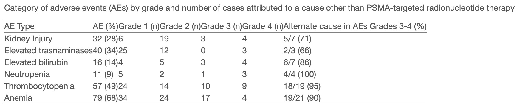 특히, 3-4등급의 심각한 부작용 대부분은 PSMA 치료 자체가 아닌 다른 원인(질병 진행, 다른 치료 등)에 의한 것으로 분석되었음.